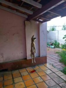 A Polícia Militar de Gaspar foi acionada para uma ocorrência fora dos padrões de atendimento: cachorro enforcado. O animal estava pendurado por uma corda na garagem de uma casa abandonada Rua Arnoldo Koch, bairro Coloninha.
