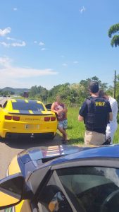 Ao parar o Camaro amarelo no acostamento da BR-101 em Biguaçu para urinar, o condutor foi abordado por uma guarnição da Polícia Rodoviária Federal que questionou a película escura no veículo.