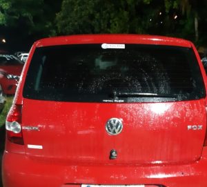 O Fox vermelho ocupado por três jovens envolvidos em assaltos a transeuntes no bairro Trindade, em Florianópolis, foi perseguido a tiros por uma guarnição do 4º BPM (Batalhão da Polícia Militar) na Avenida Beira-Mar Norte, próximo ao Terminal de Integração da Trindade.