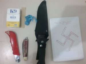 Os alunos tinham um facão, um canivete, um estilete, maconha e diário com a cruz de suástica na capa e, nas páginas internas, conteúdo de suicídio.