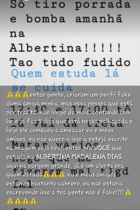 A escola que ele ameaça é Albertina Madalena Dias, da Vargem Grande, na Capital.