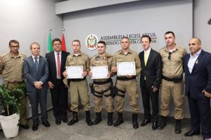 A homenagem foi entregue durante uma cerimônia realizada na Assembleia Legislativa do Estado de Santa Catarina, na presença de policiais militares e deputados.