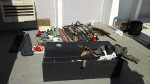Na casa dos suspeitos, os policiais apreenderam mais cinco espingardas, outro revólver calibre 22, uma garrucha calibre 22, além de grande quantidade de munição de diversos calibres.