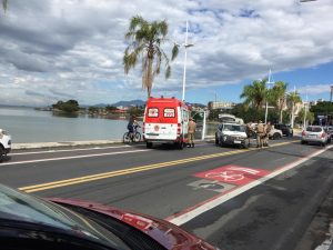 A ação mal sucedida ocorreu na Rua Desembargador Pedro Silva, no bairro Coqueiros, Florianópolis, na manhã deste sábado (23) quando uma viatura da Polícia Militar perseguia um homem ao volante de uma Hilux roubada. Em dado momento, o motorista da viatura colidiu em um Fiat Mobi que estava estacionando. Com o impacto da colisão, os dois airbags do Fiat abriram e o jovem que estava no banco da frente, por sorte, não sofreu ferimentos graves.