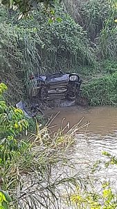Carro cai no Rio Putanga, em Massaranduba, SC
