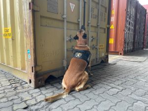 Nesta terça-feira (24) o cão Enzo indicou o contêiner onde havia cerâmica para exportação.