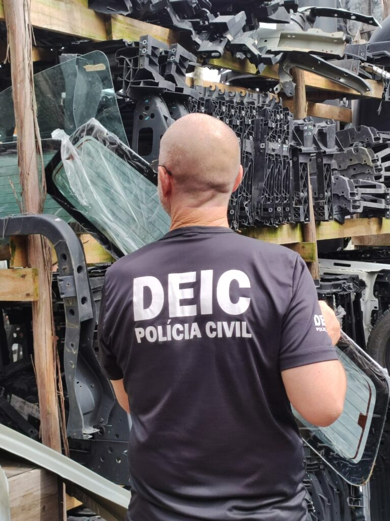 Os agentes apreenderam peças de uma Chery Tiggo furtada em Itajaí, localizada no Vale do Itajaí, além de mais peças de outros veículos com as numerações raspadas.