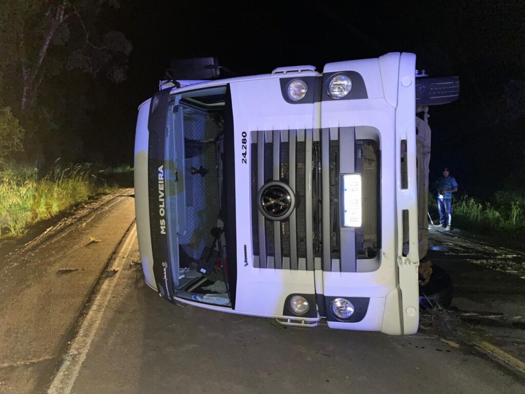 O caminhoneiro contou duas versões: primeiro admitiu que teria cochilado ao volante. Também alegou que descia a serra e foi surpreendido por dois carros, um ultrapassando o outro, que trafegavam em sentido contrário. “Para não colidir no veículo joguei o caminhão para o lado”. O trânsito foi orientado pela Polícia Rodoviária Federal.